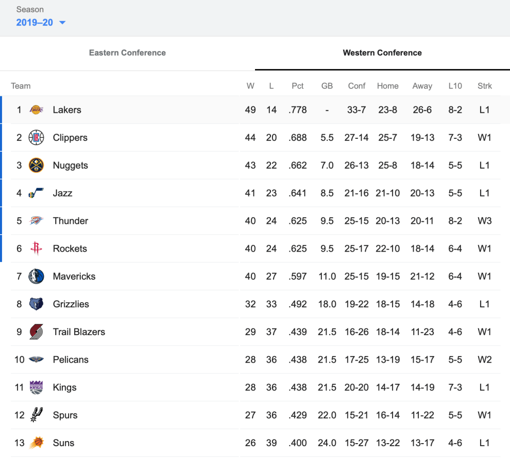 When the NBA shut down on March 11th, it shocked viewers all over the country and across the world. No one was sure if there would be a champion or if the season would even resume this year. Until the idea of ‘The Bubble’ came out. The idea that sticking 22 teams and staff in a secure and safe place would make the season restart possible. Some loved the idea whereas, others doubted it. Though it took some time, NBA Basketball will finally resume today, July 30th! As of July 29th, none of the players have tested positive for COVID-19, so the season will restart as planned. There were scrimmage games this past week which gave viewers a preview to what to expect to see in the rest of the games this season. The teams participating in the restart are the Celtics, Nets, Pacers, Heat, Bucks, Magic, 76ers, Raptors, Wizards, Mavericks, Nuggets, Rockets, Clippers, Lakers, Grizzlies, Pelicans, Thunder, Suns, Trailblazers, Kings, Spurs, and Jazz. The current team standings are listed in the image below.